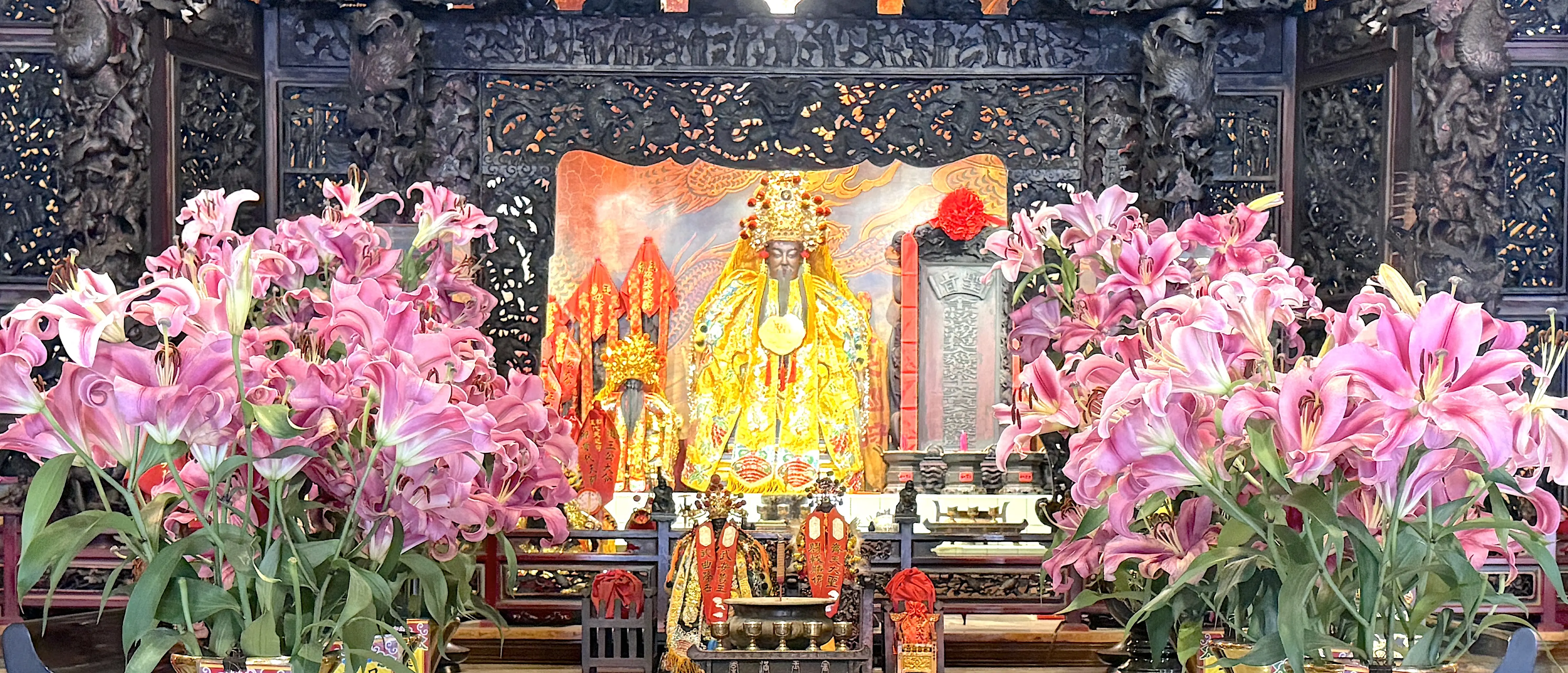 柳營代天院雕塑遊王公的金尊、紙紮鯉魚公及緞布繡製王令提供各界分靈